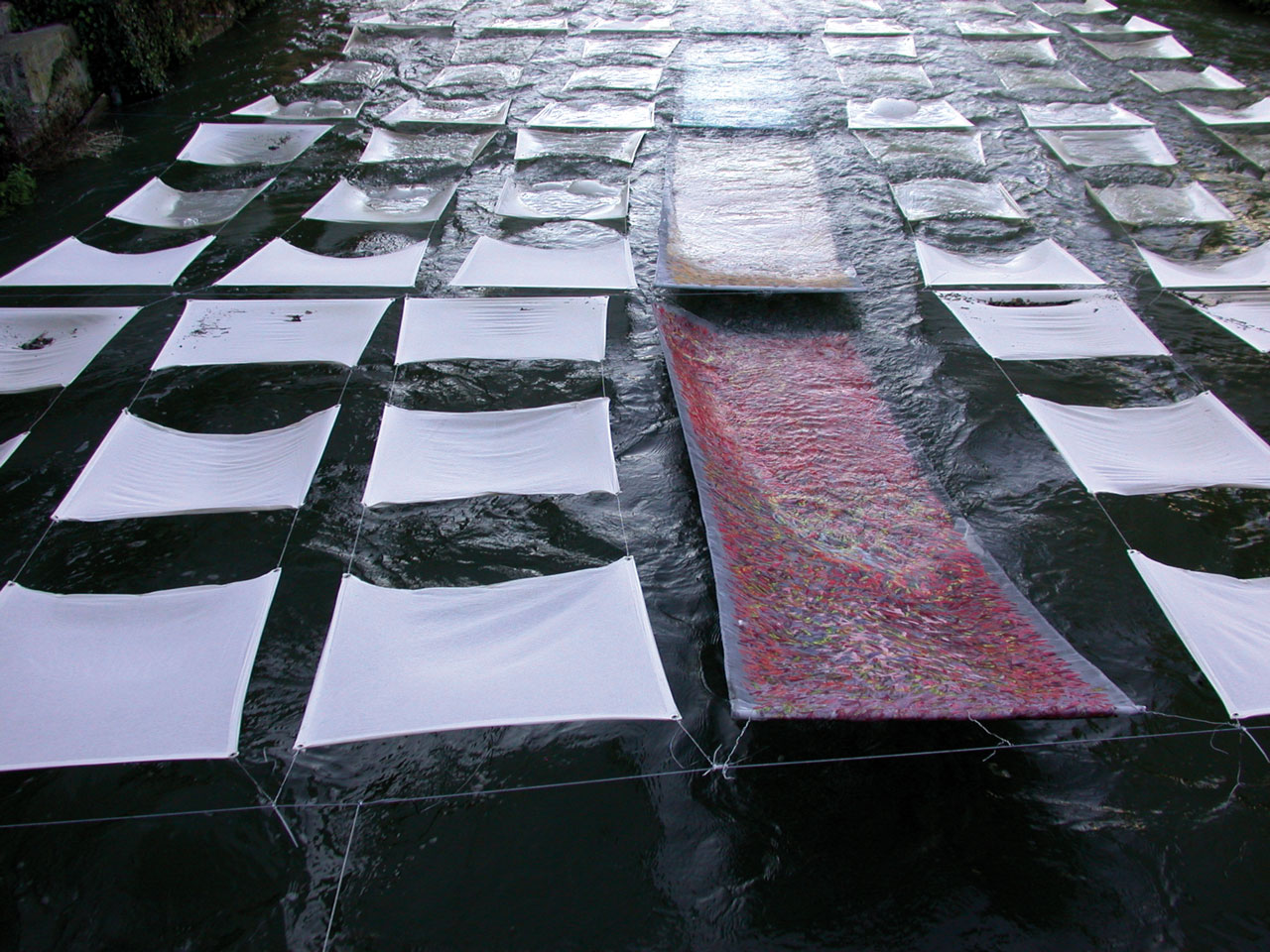 das objekt befand sich 10 tage im wasser, die ursprünglich homogenen tücher gewannen individuelle gestalt.